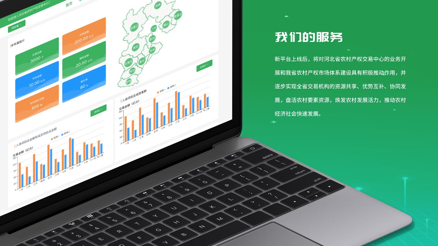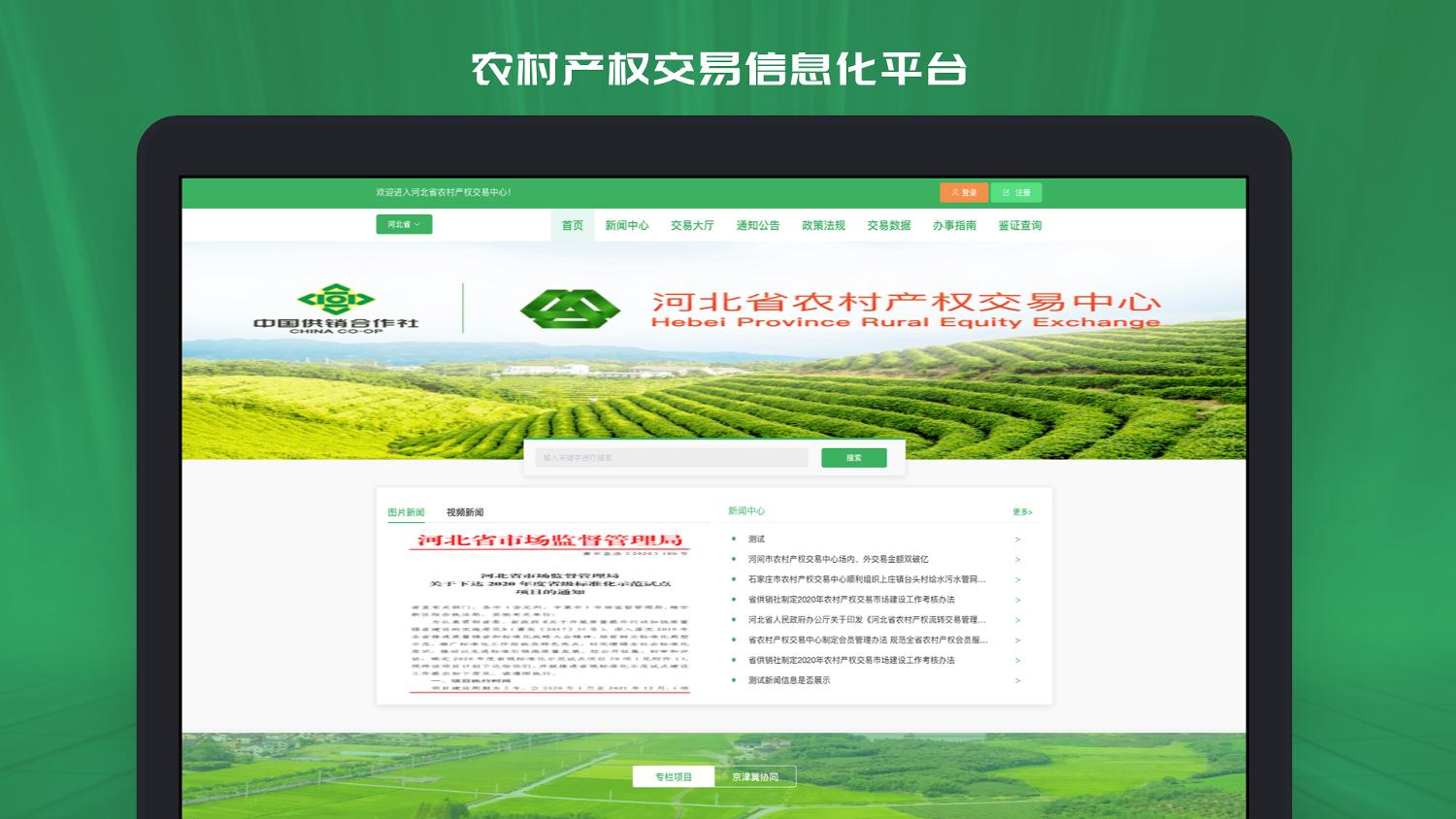 農(nóng)村產(chǎn)權(quán)交易信息化平臺建設(shè)以高質(zhì)量服務(wù)農(nóng)戶承包土地經(jīng)營權(quán)交易等15種農(nóng)村產(chǎn)權(quán)交易類別為宗旨,搭建集交易流程、賬號管理、結(jié)算體系、數(shù)據(jù)統(tǒng)計(交易數(shù)據(jù)、網(wǎng)站數(shù)據(jù)、財務(wù)數(shù)據(jù)、用戶數(shù)據(jù))、等多種實用功能的安全網(wǎng)絡(luò)業(yè)務(wù)環(huán)境,為河北省農(nóng)村產(chǎn)權(quán)交易有限公司提供優(yōu)質(zhì)、高效的線上業(yè)務(wù)辦公平臺。
